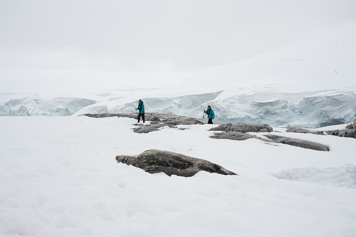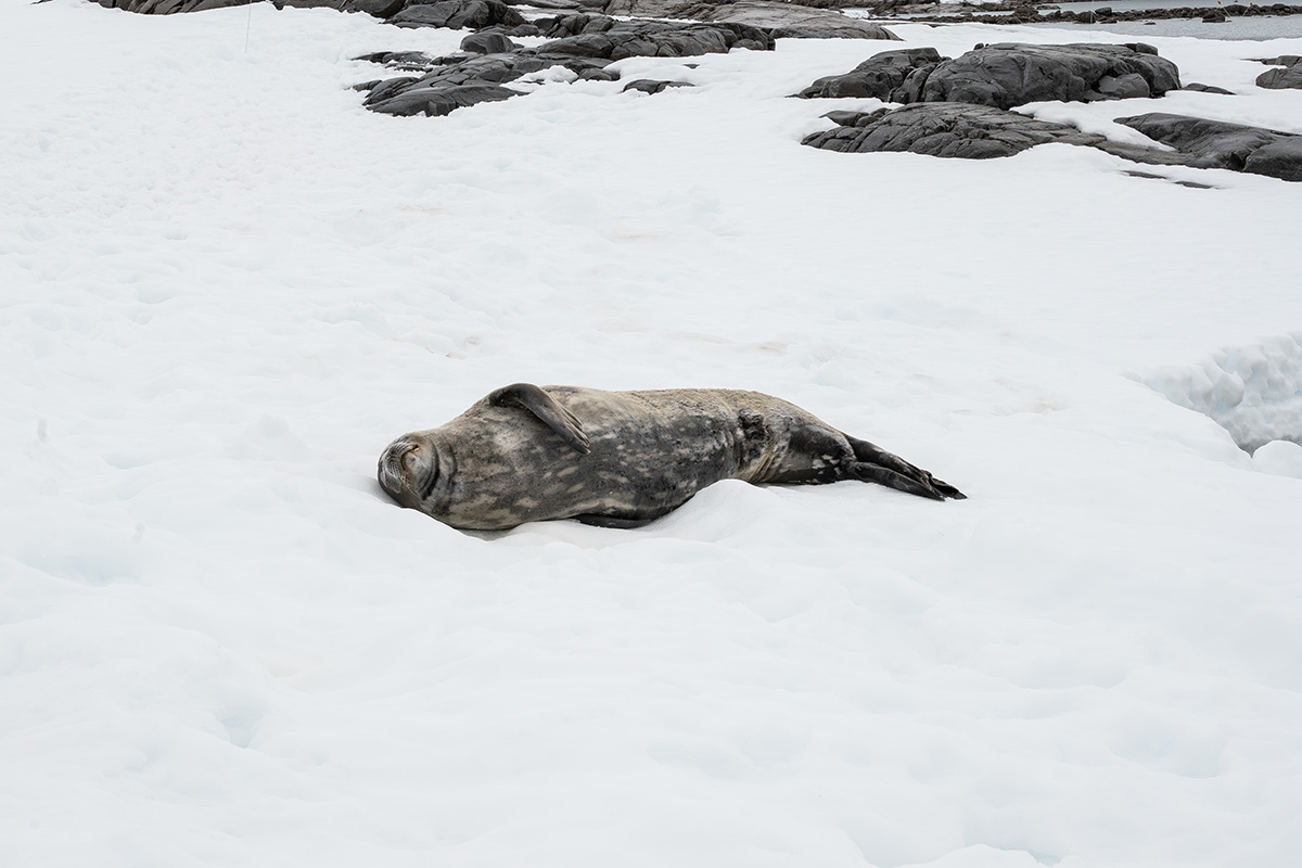 Portal Point was our first destination of the day and as soon as we landed we saw a weddell seal resting next to our trail. The weddell seal (Leptonychotes weddellii) is a relatively large and abundant seal with a circumpolar distribution surrounding Antarctica and didn't seem to mind our presence at all! So as a photographer and wildlife lover, I couldn't go much further and chose to spend most of my time in Portal Point observing this incredible animal!