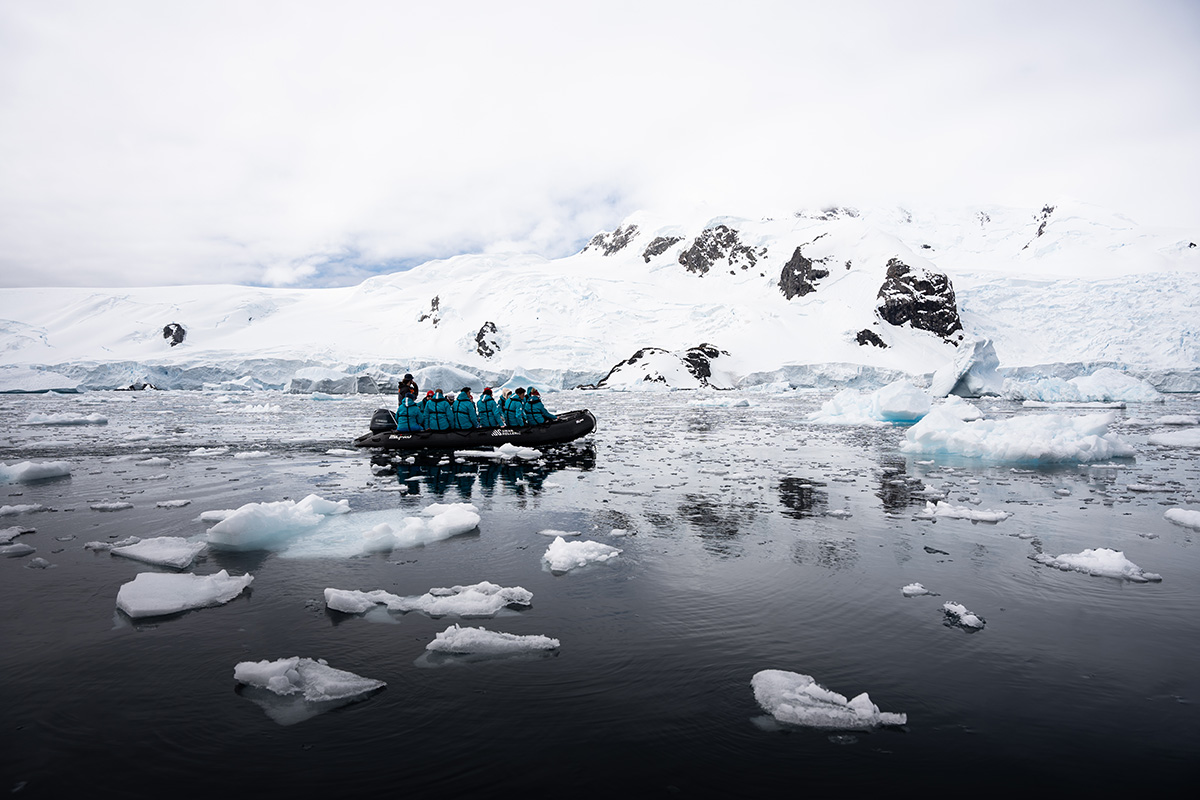 After our first landing, we returned to the Swan Hellenic ship SH Diana, had lunch, rested a little and soon it was time to explore again! Here in Antarctica we all know that there is no time to waste, every minute of good weather is valuable. So in the afternoon, we went on a zodiac safari in Cierva Cove. It was time to look for icebergs of different sizes and shapes, as well as any marine life possible, but little did we know that the mountains would be what caught our attention the most.