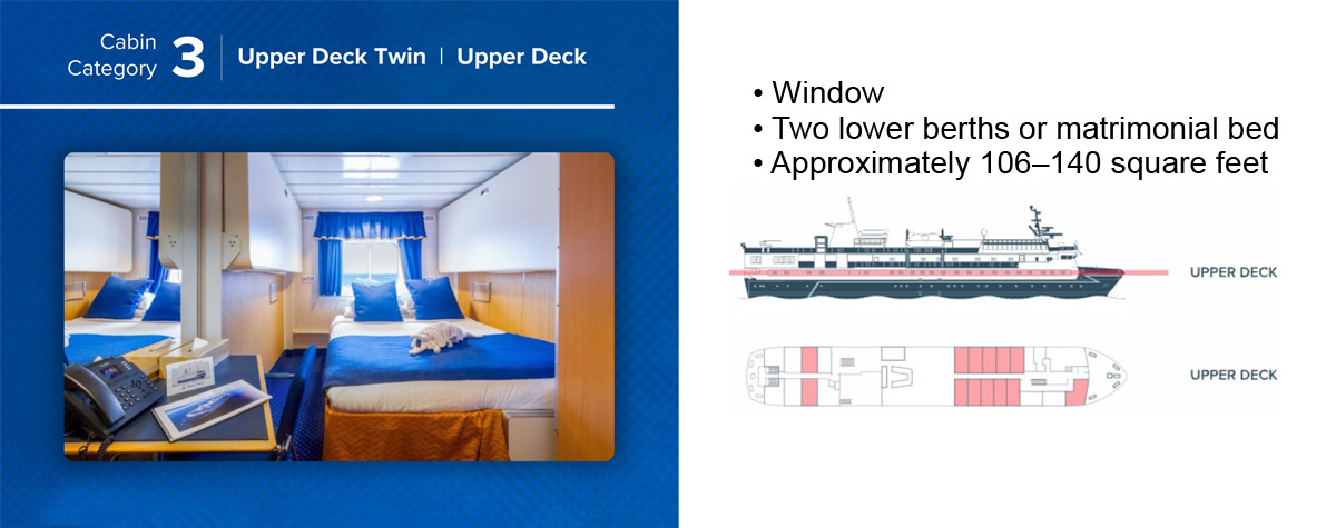 Prefer the outdoors? The open decks are a dream for photographers and scenery lovers. With a shallow draft and easy Zodiac access, you'll spend more time exploring and less time ferrying.